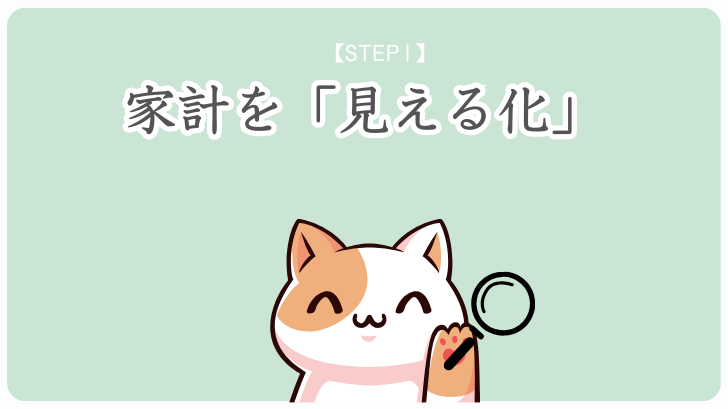つまり、家計簿をつけて”毎月の収入と支出を把握”する。